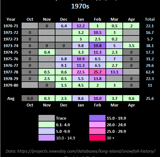 Upton, NY Snowfall Summary